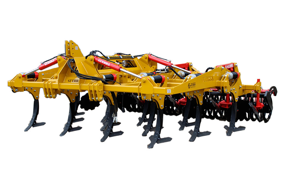 Com três fileiras de braços, com grande amplitude e altura, para tarefas de restolho e descompactação do solo, alcançando diferentes profundidades segundo o tipo de complemento a adaptar.