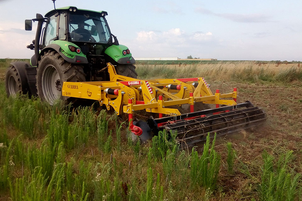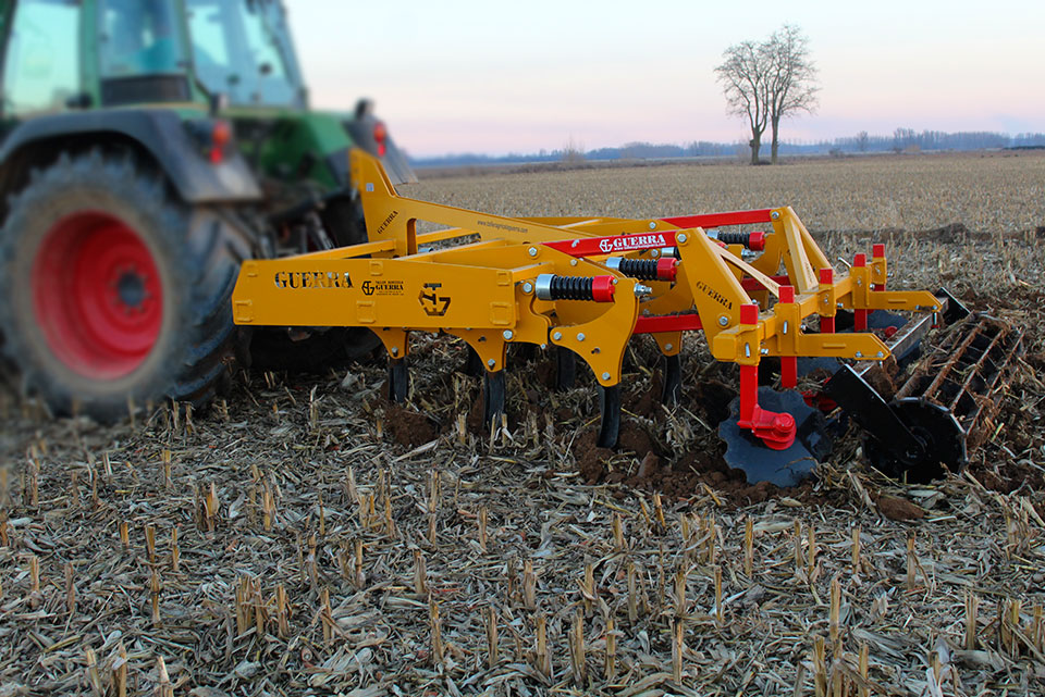 Équipé de trois rangées à dents, de haut dégagement et un niveau pour les labours de abondant déchaumage et décomposition du sol, avec de différents profondeurs, selon le modèle de supplément à adapter.